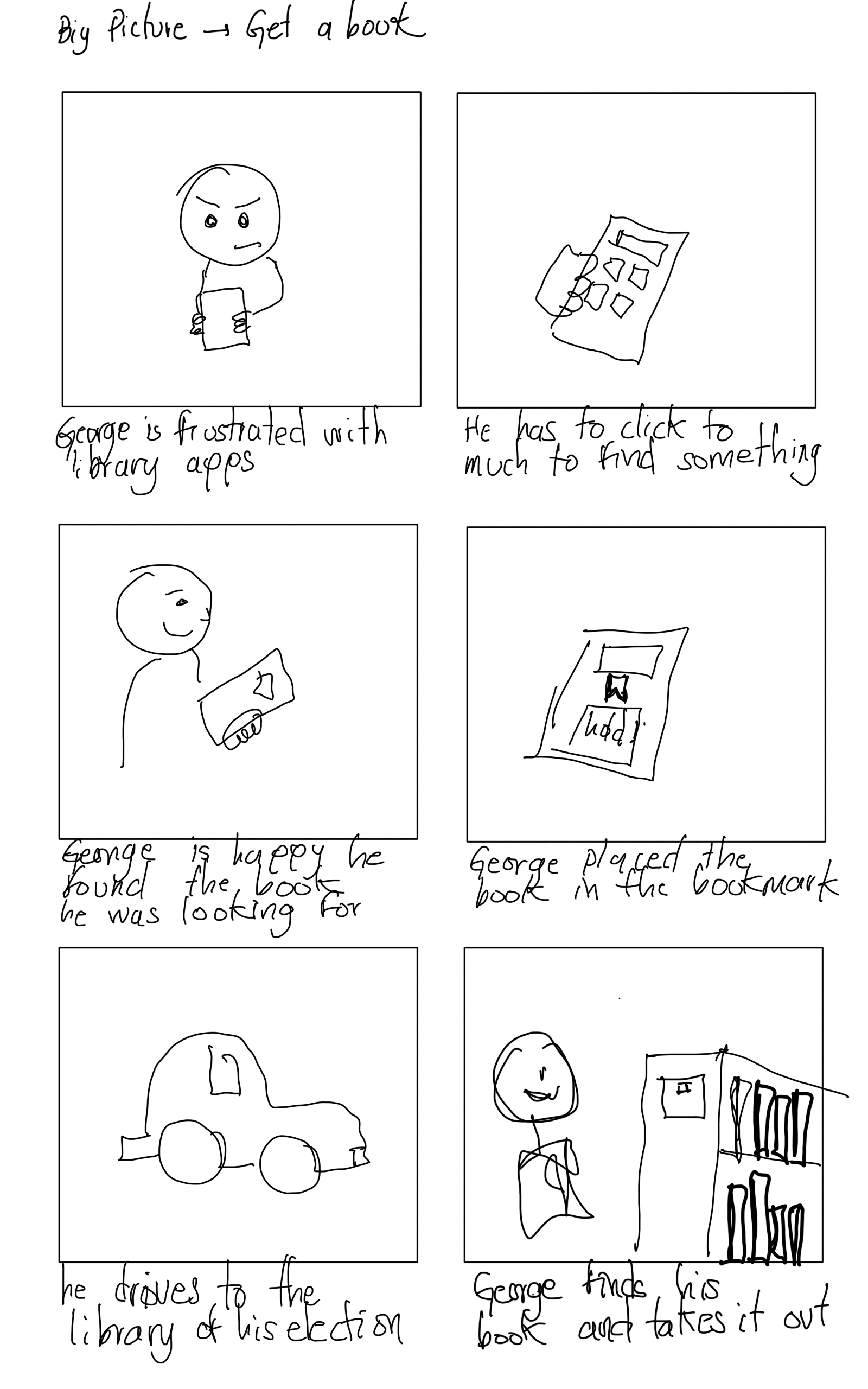 To access the material or book description, users had to click 3 to 4 times on items, resulting in a lengthy and frustrating process. This screen did not adhere to accessibility requirements, lacking text, descriptions, or any guidance besides the picture.
