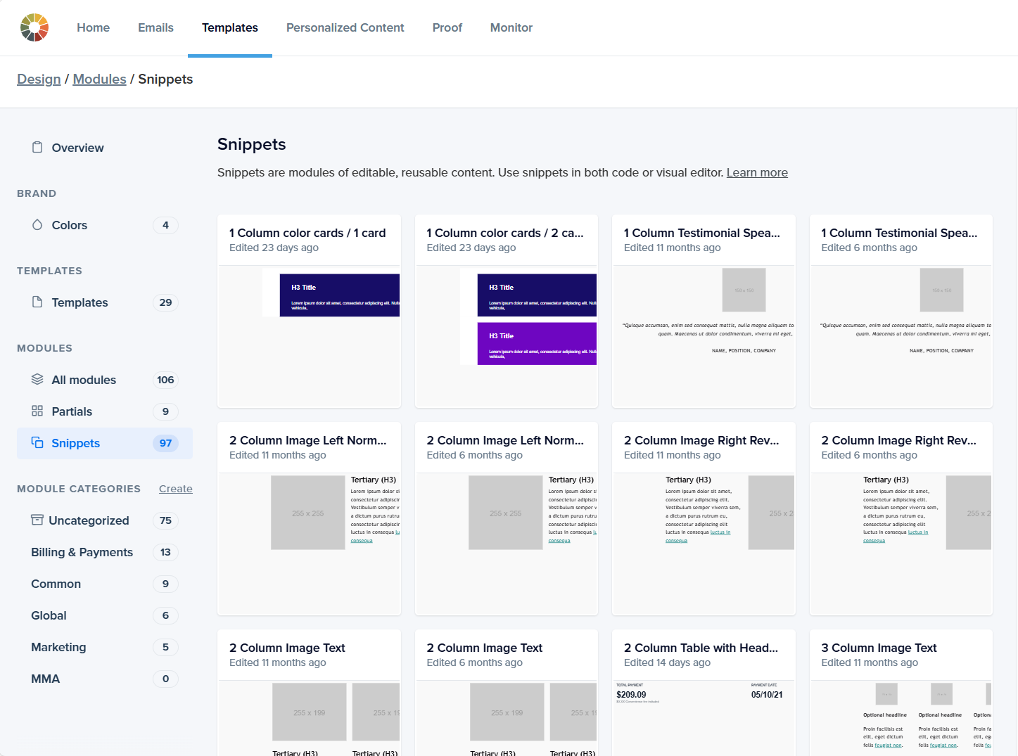 Trial and Error: Considered using Litmus to create a drag-and-drop system, but it proved unsuitable due to its capabilities; it is a testing tool, not a design tool. Despite creating over 20 snippets, they did not function consistently.