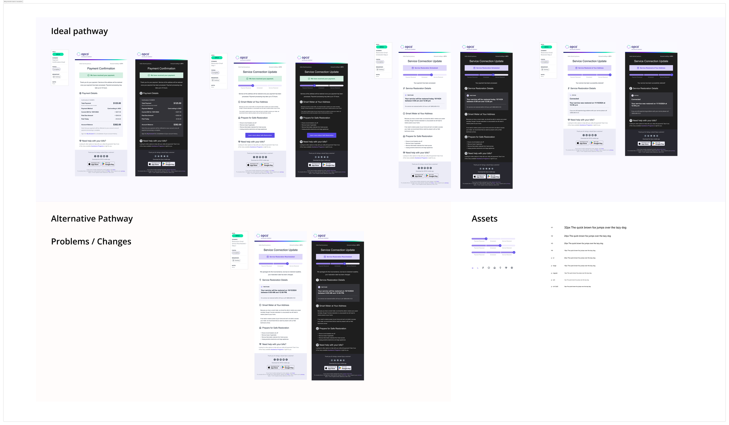 We redesigned the ideal email workflow for when a user makes a payment, starting with a confirmation email, followed by emails for service activation and each status update. Additionally, we created an email for cases involving issues or errors in the reconnection process, continuing through to the final notification when the service is successfully connected.