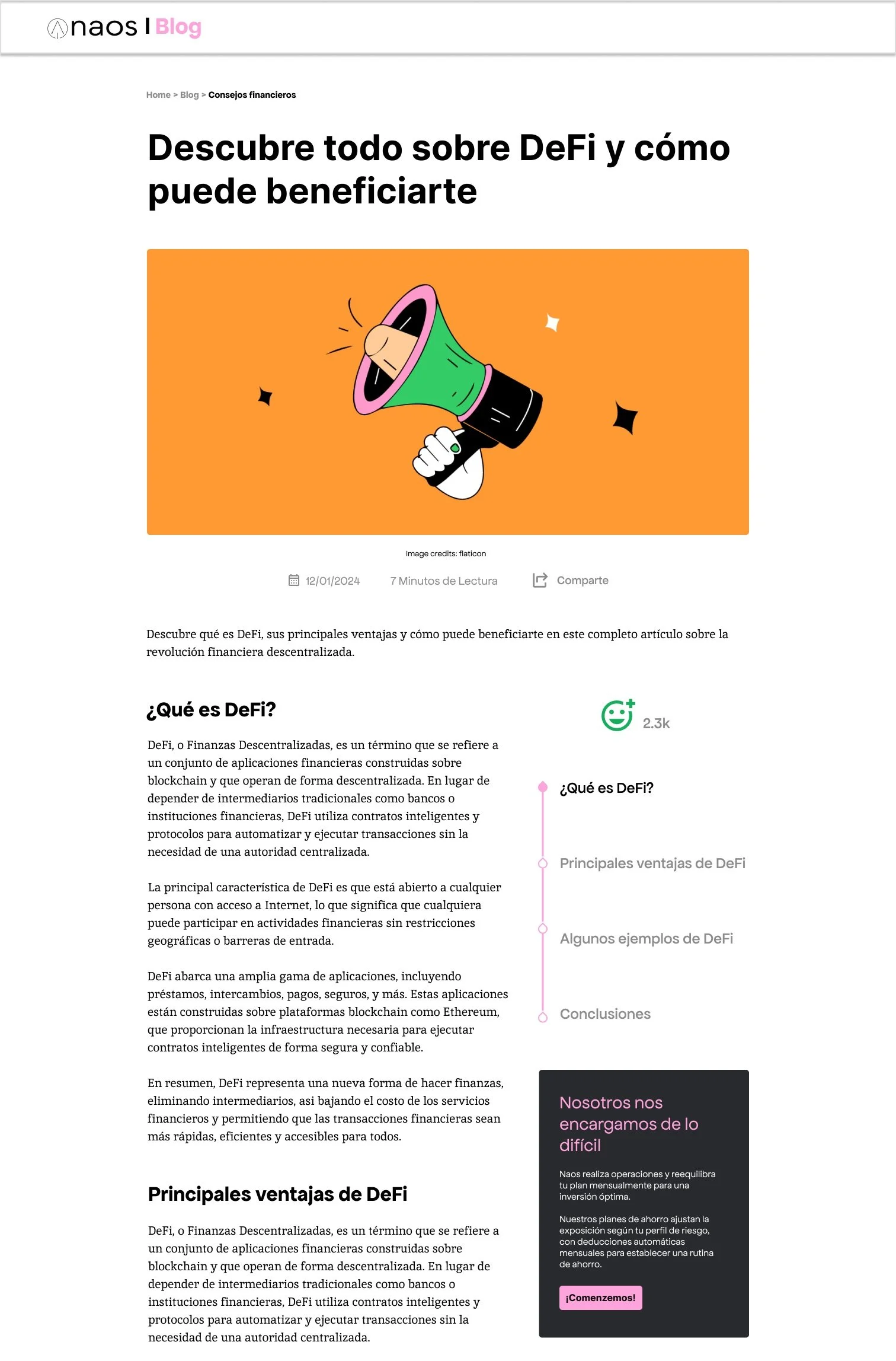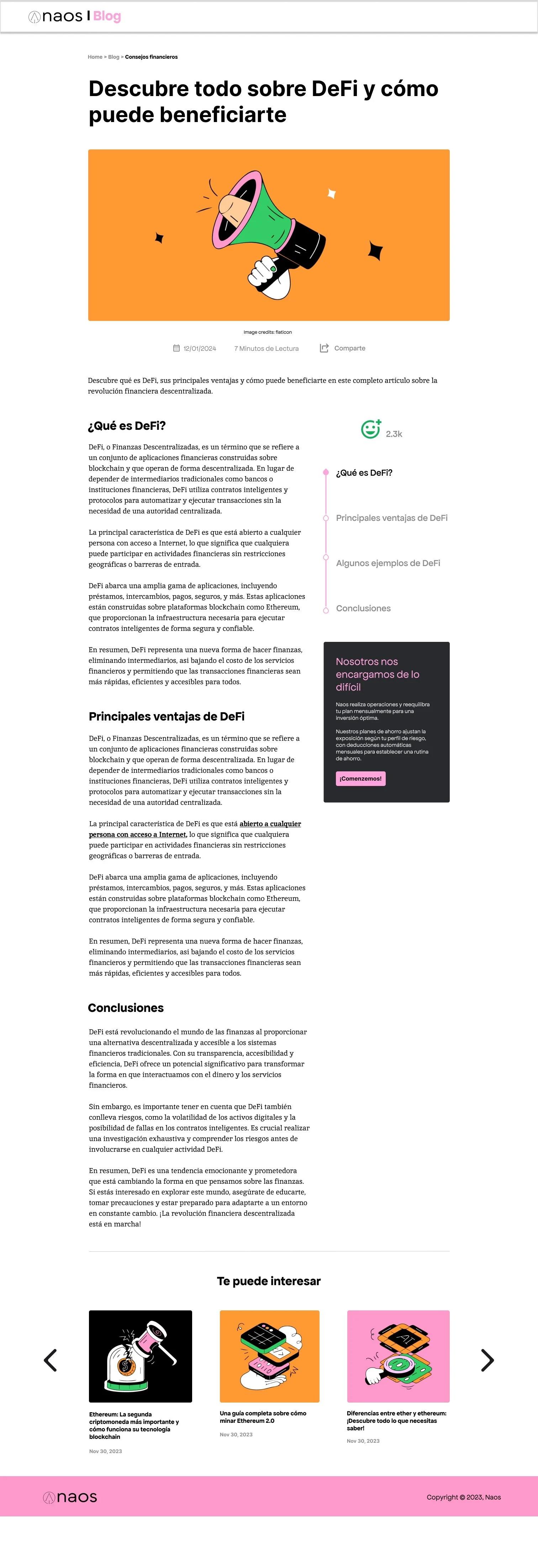Naos is a pioneer on the crypto currency investments environment in Mexico. I played a role in improving the website to ensure a superior user experience, contributing to the enhancement of the writing, UI, branding and navigational aspects.