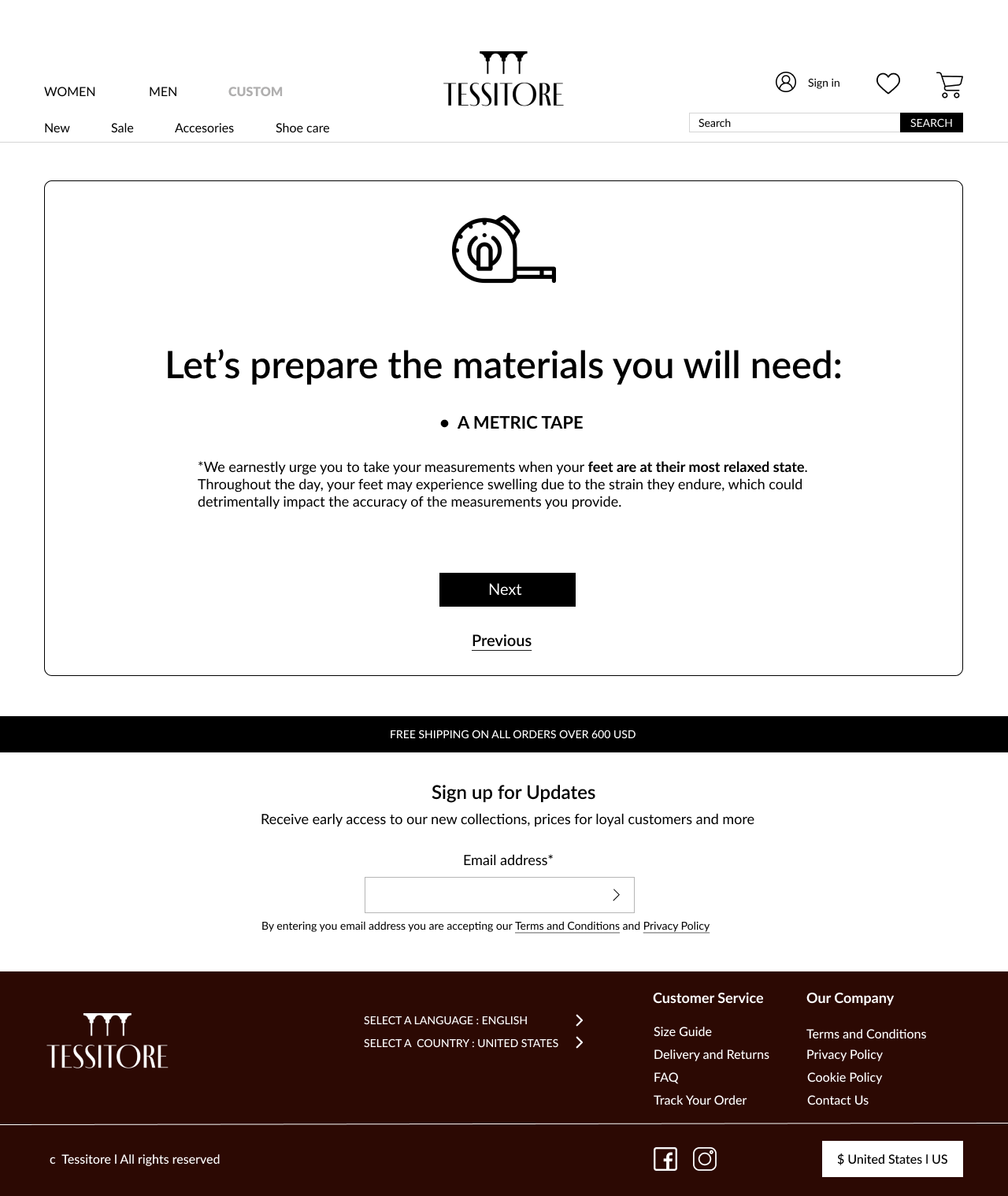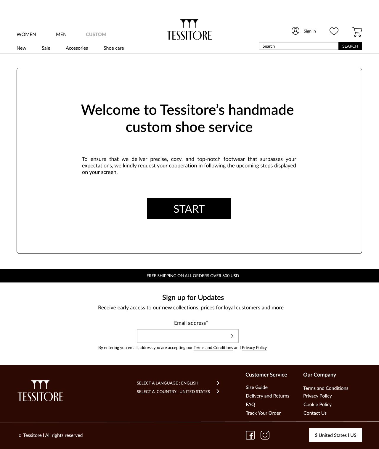 Tessitore required a straightforward approach to measure clients' feet online, and the system to be available on its website for customized shopping.