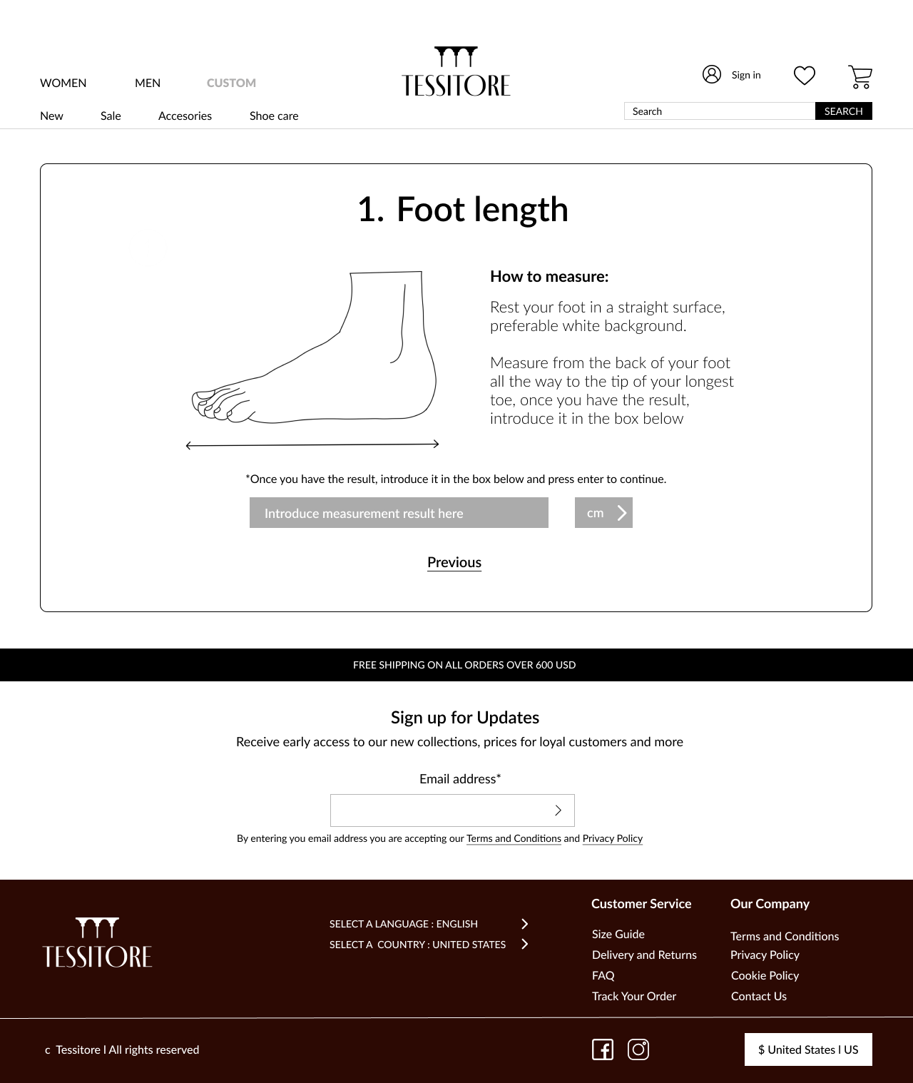 After receiving the measurements, I began designing the website with a measurement system that worked well for both the user and the shoemaker. This project is ongoing.